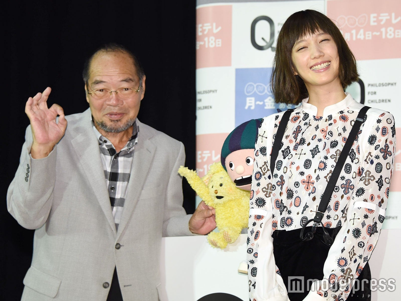 モデルで女優の本田翼が27日、NHKにて開催されたEテレ新番組『Q~こどものための哲学~』(8月14日~18日 よる9:00~/5週連続放送)の試写会に、タレントのガッツ石松と登壇した。