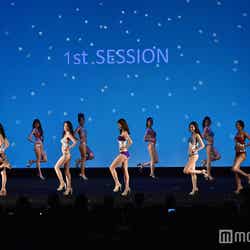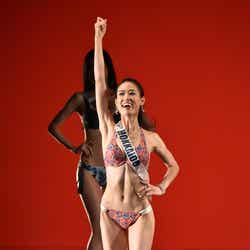 この日は、14名(1名辞退)のファイナリストによるビキニスタイルでの水着審査が行われ、さらに上位10名(TOP10)がカジュアルファッションによるスピーチ審査を実施。最終的に絞り込まれた上位5名(TOP5)がドレススタイルによるウォーキング審査と質疑応答に挑んだ。(modelpress編集部)