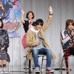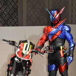 フルボトルと呼ばれる不思議なアイテムをベルトに装填することで、戦兎はビルドに変身することができる。変身前の決め台詞は「さぁ実験を始めようか」。基本となる変身フォームはウサギと戦車を組み合わせもので、犬飼は「想像の斜め上でかっこよくて、自分がなれると思うとうれしくてたまらなかった」と大興奮。この日は変身ポーズも披露し、会場を沸かせた。