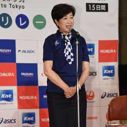式典では、小池都知事が青森から繋がれてきたたすきを受け取った。小池都知事は、「1600人の方々に今年はたすきが伝えられ、絆をどんどんと被災地からこの東京大会が開かれる東京のど真ん中に届けられました。今、たすきを受け取ったら、汗でびっしょりで、重たかった!それだけ、東京大会を成功させようという被災地の思い、希望、そういったものが、涙や汗もその中に含まれているのだろうと思います。3年後のオリンピック・パラリンピック東京大会をぜひとも成功させなければならないという思いが私の元に確かに伝わりました」と言葉にした。小池都知事は、今回のたすきリレーには、東北のみならず、熊本県の被災地の高校生たちがランナーとして参加したことなどを紹介し、「このように、1人、1人みんなが主役になって、そして輝く、そんな東京大会でありたいと思っています」とオリンピック・パラリンピック東京大会への思いを言葉にした。