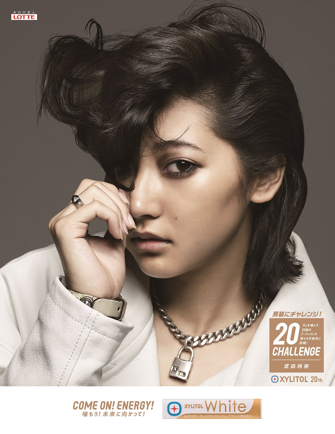 「ホワイト」をテーマに全身スタイリングした武田。普段の透明感溢れる可愛らしいイメージから一変、スタイリッシュでクールな男装モデルへと変身した。