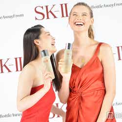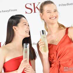 9日、米ランジェリーブランド「Victoria’s Secret(ヴィクトリアズ・シークレット)」エンジェルズの1人で、スーパーモデルのベハティ・プリンスルーが来日し、都内で行われた「SK-II 輝く日へのワンボトル」チャレンジ スペシャル動画公開イベントに出席。スペシャルゲストとして登場したモデルの山田優とともに、トークセッションを行い、美の競演を果たした。