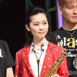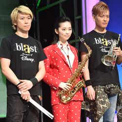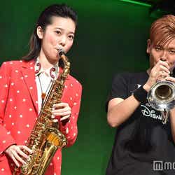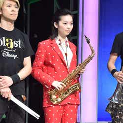 女優の島崎遥香が15日、自身が応援サポーターを務める「ブラスト!ミュージック・オブ・ディズニー」の東京公演初日に特別出演。オールバックヘアでサックス演奏を披露した。