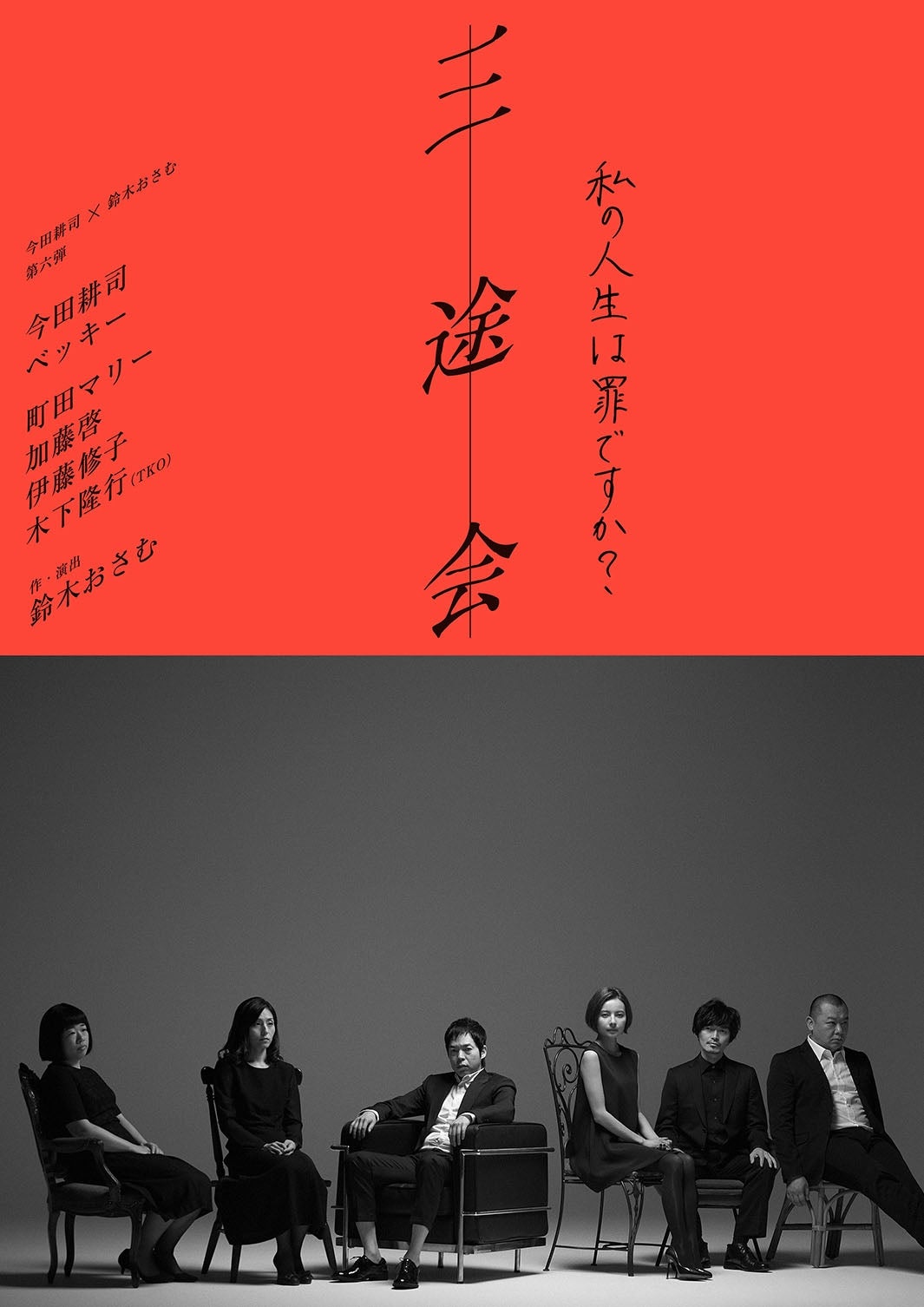 主演をタレントの今田耕司、作・演出を鈴木おさむ氏が担当する舞台『三途会~私の人生は罪ですか?~ 』が、11月22日(水)から11月26日(日)まで、東京グローブ座で開催されることが決定した。