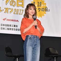 タレントの鈴木奈々が19日、“バイクの日(8月19日)”にちなんで都内で行われたイベントに、タレントのパンツェッタ・ジローラモ、ファッションディレクターの森岡弘氏とともにゲスト出演した。