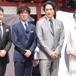 神田明神は、徳川家康が関ヶ原の戦いの勝利を祈祷した場所。東軍に縁が深い所だが、今日は石田三成役の岡田、豊臣秀吉役の滝藤、島左近役の平、島左近の妻役の中越と西軍が勢揃い。イベントでは映画の内容にちなみ“人生最大の決戦の日”をテーマとした川柳を1人ずつ発表し、岡田は「鬼が出て鬼締め決めて鬼ヒット」という川柳を読み上げた。「甲冑を着るときにすごくきつ締めたんです。それをよく小道具さんが『鬼締め』と言っていて、戦いに行くよう気持ちで(撮影に)向かっていた。鬼のようにヒットしてほしい。自分の代表作になると信じています」と願った。