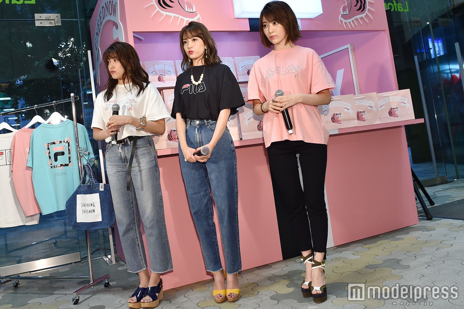 ブランドへの反響を尋ねられた入山は、「ファンの方の間だけではなく、ファッションに興味がある女の子からも反響があると聞いて、すごく嬉しく思っています」と声を弾ませ、「私の友だちが『見たよ』って言ってくれたりして嬉しいです。メンバーもお気に入りです」と話した。デザインで好きな点を聞かれた加藤は「今日、着ている服では、お花柄が入っていたり、女の子らしいポイントがあるのが好きですね」と紹介。