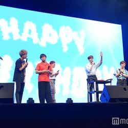 その後は、8月29日に23歳の誕生日を迎える片寄をメンバーがサプライズでお祝い。メンバーとファンからバースデーソングが贈られ、ケーキが運び込まれると、片寄は満面の笑みで喜びをあらわにした。さらに、サプライズは続き、LDH ASIAの運営にも携わり、9月1日から9月3日には舞台「幽劇」の上海公演(中国・虹橋芸術中心)も控えるEXILE/EXILE THE SECONDの橘ケンチがステージに登場。まさかのゲストにファンが喜びと驚きの歓声で迎えると、ケンチは中国語で挨拶するなどし、熱気に包まれた会場をより一層盛り上げた。