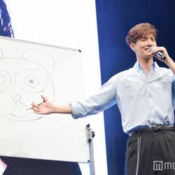 そして、片寄の「皆さんに紹介したい人たちがいます」という言葉を合図に、GENERATIONSの白濱亜嵐、数原龍友、小森隼、佐野玲於、関口メンディー、中務裕太がサプライズ登場。大きな歓声を受け現れた6人が挨拶を終えると、数原は早速、似顔絵をイジリ倒し。「この鼻の小ささ!こんなに小さくないだろ」「目もどっちかというとたれてる」とツッコミを入れ、会場の笑いを誘った。