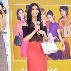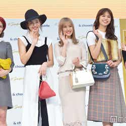 E-girlsの藤井夏恋(Happiness/ShuuKaRen)、楓(Happiness)、佐藤晴美(Flower)、SAYAKA(Happiness)、山口乃々華が1日、東京・池袋サンシャインシティにて行われたバッグブランドの新CMお披露目イベントに出席した。
