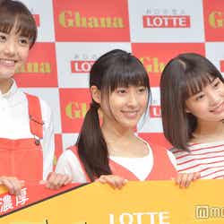女優の土屋太鳳、松井愛莉、広瀬すずが11日、都内で行われた新CM発表会に登壇した。