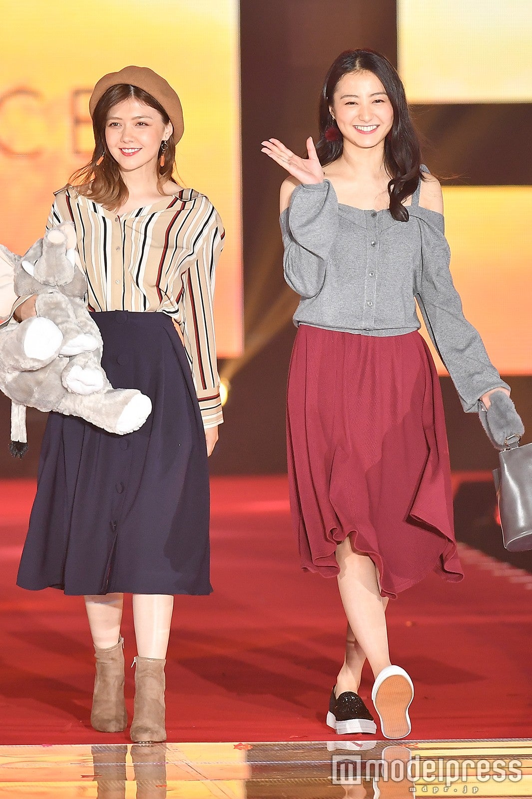 西野七瀬(乃木坂46)×渡邉理佐(欅坂46)の2ショットランウェイでスタートし、新木優子や鈴木友菜、武田玲奈、馬場ふみからが続々登場。ラストはチェックのオールインワンを着こなした新川が飾り、同誌モデルらはそれぞれ秋冬ファッションに身を包み豪華なランウェイを披露した。