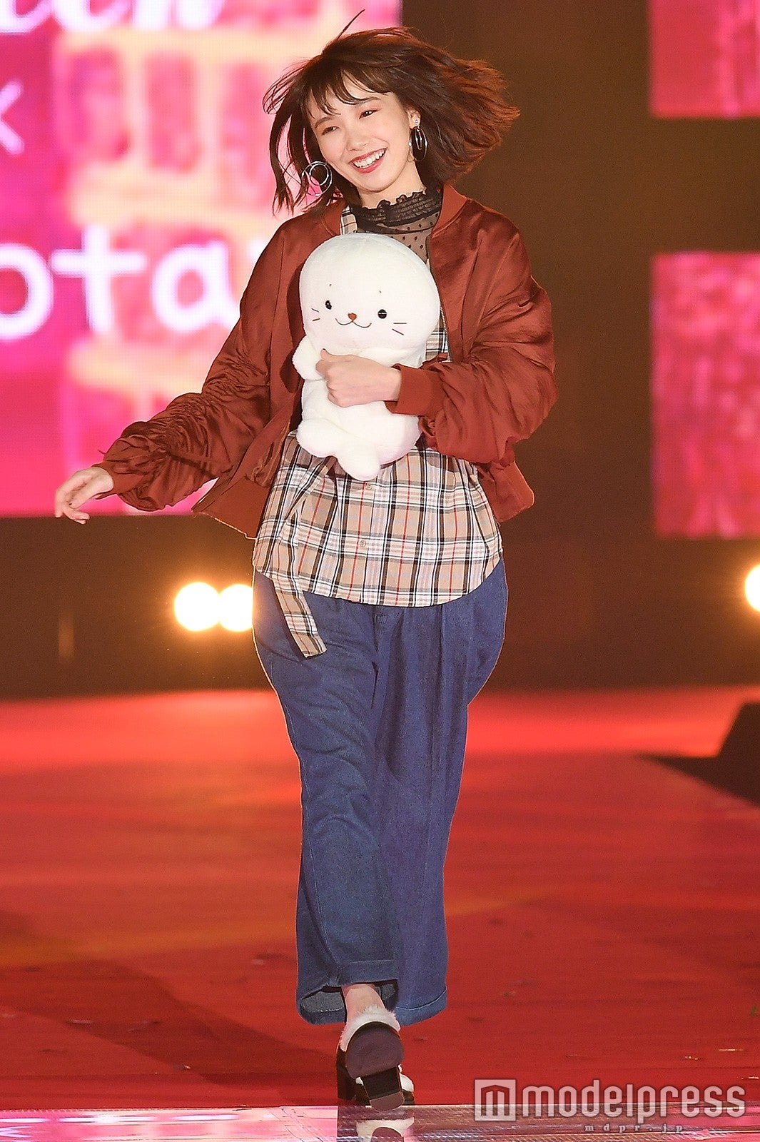 「Seventeen」ステージは、「WEGO」、「しろたん」とコラボレーション。トップバッター・横田真悠でスタートし、飯豊まりえ、江野沢愛美ら同誌モデルが次々と秋冬ファッションを着こなし、手つなぎやほっぺキスなどを交えた楽しげなランウェイを展開。ラストは広瀬が膝丈ワンピース×Gジャンコーデに身を包み、笑顔で飾った。