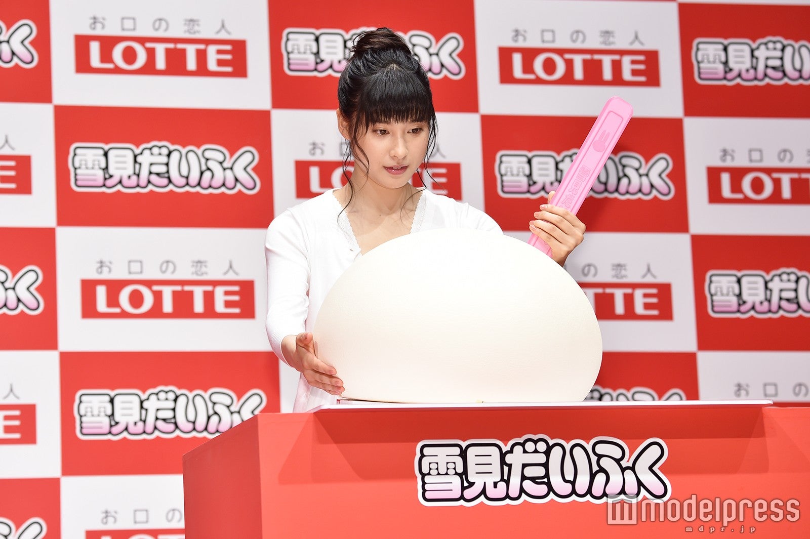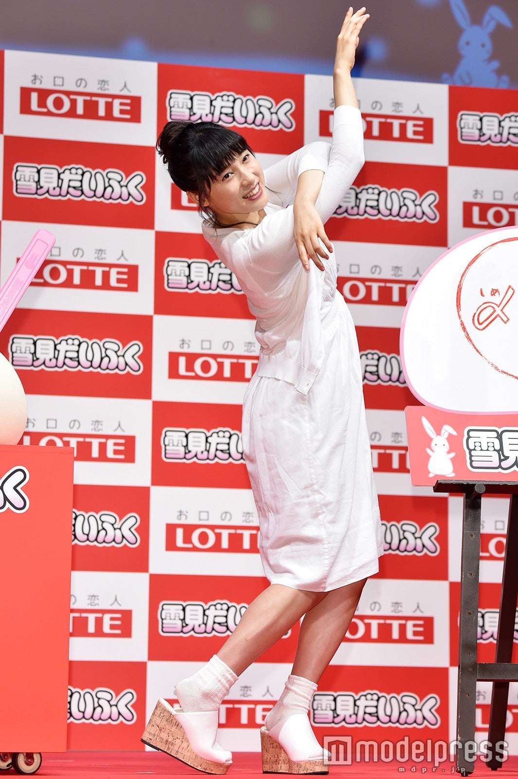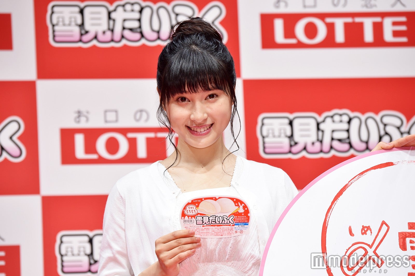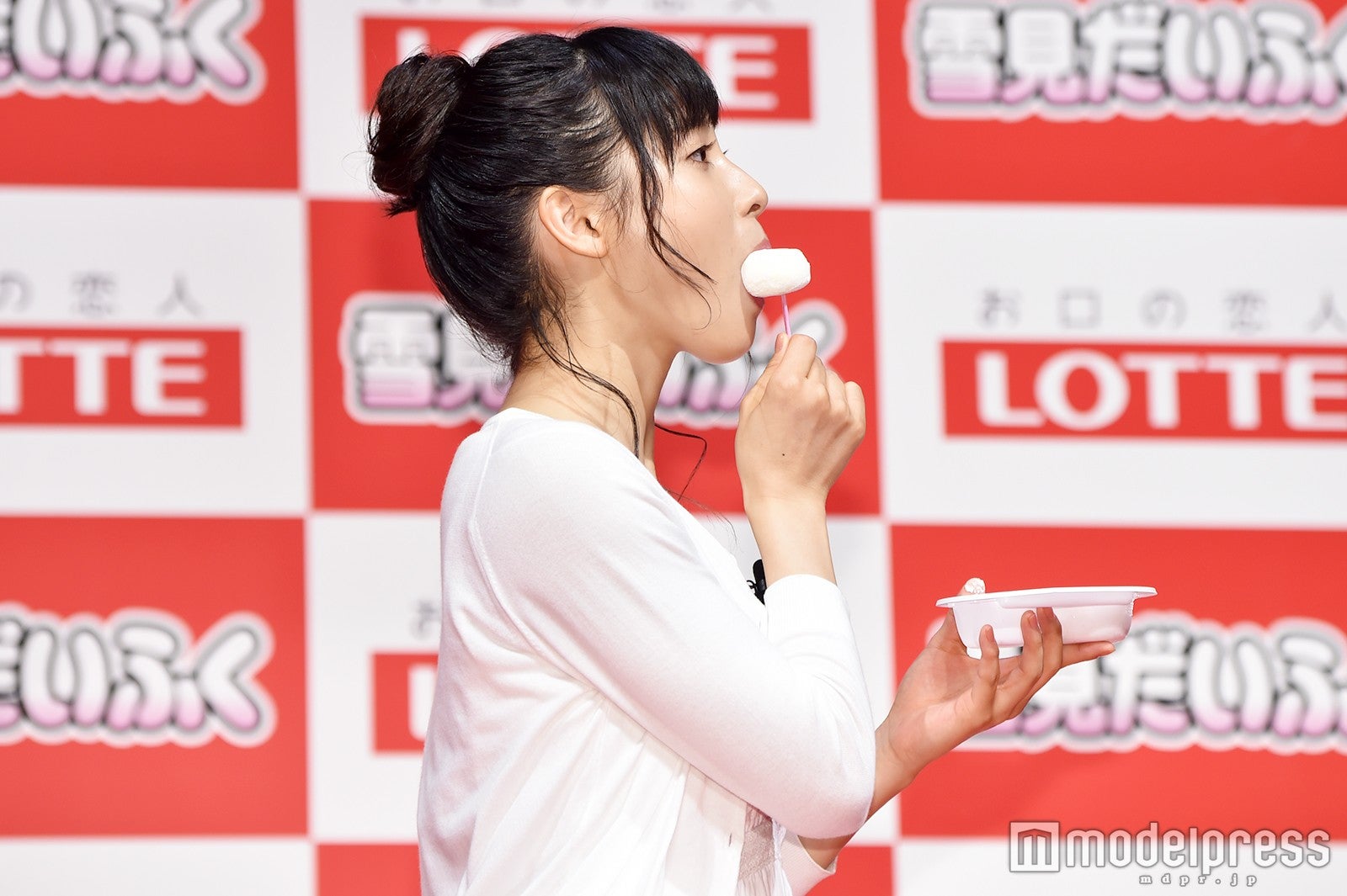イベントでは、そんなCMで着用した真っ白な衣装で登場。お気に入りポイントを聞かれると「このアイスはふんわりとしたイメージがあるので、ちょっと柔らかくて白くて、ホッとするようなところがポイントかなと思って選ばせていただきました」と紹介し、普段も真っ白な衣装を着ることはあるか尋ねられると、「普段も着ますし、舞台あいさつや大事な日など、プライベートでも仕事でも大切にしている色の1つです」と語った。(modelpress編集部)