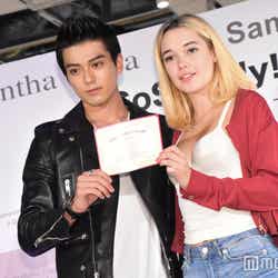 俳優の新田真剣佑、モデルのサラ・シュナイダーが18日、都内で行われたブランドの新CM発表会に出席した。