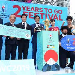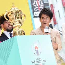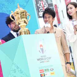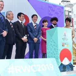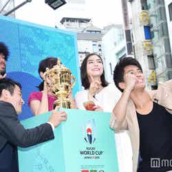 さらに、ラグビー大会日本代表の堀江翔太選手、福岡堅樹選手も駆けつけ、イベント内で同大会の優勝国に贈呈されるトロフィー「ウェブ・エリス・カップ 」が初披露目された。合図とともにスタンドから出現すると、一同は感嘆。ラグビーファンの武井は「ぜひここに(日本の)名前を刻んでほしい」といい、「もし何か足りないことあったら情報を運びたい。いろんなスポーツの橋渡しができたらうれしい。選手たちがより強く羽ばたくなるための一躍になれたら」と貢献を誓った。(modelpress編集部)