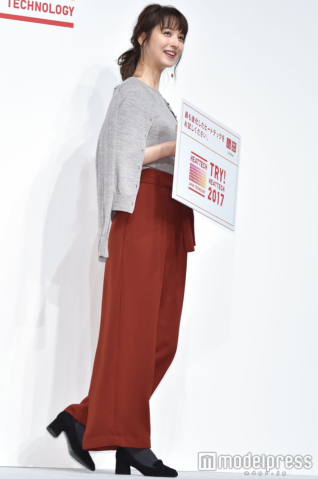 この日のファッションについて聞かれた佐々木は「ベーシックなアイテムに、今年らしい色のパンツを合わせて、女性らしく仕上げていただきました。こういった秋らしい色を使うのは楽しいですよね」と紹介し、冬のオススメコーディネートについて「女性はとくにタイツやレギンスが欠かせないと思うんですけど、ヒートテックのタイツの種類も豊富ですし、カラーバリエーションも多いので、スカートを楽しみたいなと思います」とコメント。同商品をプレゼントしたい人を尋ねられると、佐々木の親友で女優の大政絢の名前を挙げ、「私も北国出身で、親友の大政絢ちゃんも北海道出身なので、ヒートテックをプレゼントして、ぜひ北海道に遊びに行って欲しいなと思っています」と笑顔を見せた。(modelpress編集部)