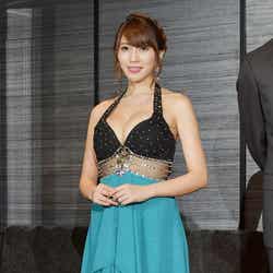 女優人生史上未だかつて着たことがないというほどの、背中と胸元ざっくり開いた華やかなドレスに身を包み、「露出度がすごく高いですし、最初は本当にこれでテレビに出ていいのかって気持ちがありました」とコメント。