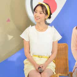 イベントは、新美アナと榎並大二郎アナの進行のもと、それぞれの担当カラーの衣装で登場。モデルさながらのウォーキングを披露した。