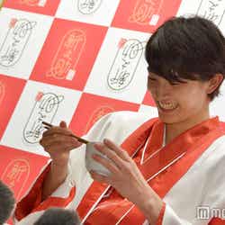 杉野が選ぶ“ごはんのおかずナンバーワン”は「肉じゃがです。和食が好き」。大勢の報道陣が見守る中、炊きたてのご飯を一口試食すると「今まで食べていたお米はなんだったんだろうという感じ。ビックリしました。家族でも食べたんですけど、やっぱり普段めったにそんなにおいしいお米を食べないので…。すごくみんな驚愕しましたね」と初々しい感想で笑いを誘った。