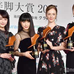 女優の土屋太鳳とシャーロット・ケイト・フォックスが12日、都内で行われた「第15回クラリーノ美脚大賞2017」授賞式に出席。NHK連続テレビ小説でヒロインを務めたことのある2人が揃って登場した。