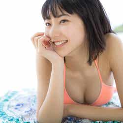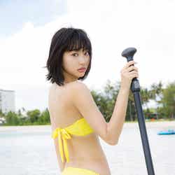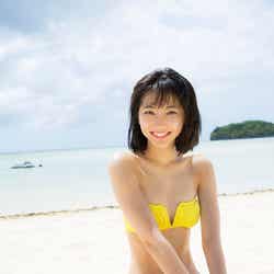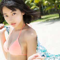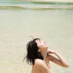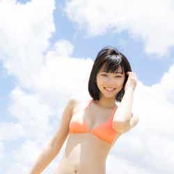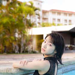 5月にグアムで撮影した同作は「彼氏目線」の仕上がりになっているそうで、「彼氏に目線を送っているシーンは?」と尋ねられると、「一緒に遊園地に行って楽しんでいる感や、隣に座っている感はあります」とにっこり。大胆なビキニ姿に加えて、セーラー服姿も披露しており「(高校を)卒業してちょっと……、まだ行けるかなと思いました!」と笑顔を弾けさせた。