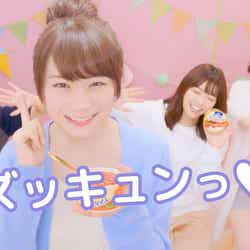 また、WEBでは、くじで引いたミッションをメンバーがこなしながら食レポを行う動画2パターン公開。白石・松村・生田・堀チームのムービーは、白石が「食レポゲーム」を「ショックレッポ」と噛んでしまう可愛いらしい様子や、生田の「最大級に可愛く食レポ」、松村の「ツンデレで食レポ」が収められている。一方、西野・桜井・秋元・高山チームは、西野が仕切ると宣言してスタートするものの企画概要をど忘れし、高山と秋元が企画趣旨を説明してしまう場面からスタート。桜井はキャプテンらしく15秒で完璧な食レポを披露し、秋元は持ち前の可愛いさを表現するために「あーん」をカメラに向かって行うなど、メンバーそれぞれの個性が表れた動画となった。(modelpress編集部)
