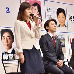 番組公式SNSなどで公開されていたキャストたちの“選挙ポスター”風ビジュアルも話題を呼んでいる同作。イベントでは、ファンミーティング参加者による、お気に入りのポスターに投票する“選挙”企画が行われた。その結果、トップ当選を果たしたのは、高橋演じるサラブレッド市議会議員・藤堂誠。ライバル市議会議員を演じる篠原、AKB48選抜総選挙では2度1位に輝いた前田、斎藤を抑え、見事勝利した高橋は、ガッツポーズで無数のフラッシュを浴びると、「ありがたいかぎりです。なんだか今、選挙をやってるみたいな感じになってますね」と満面の笑みを浮かべた。
