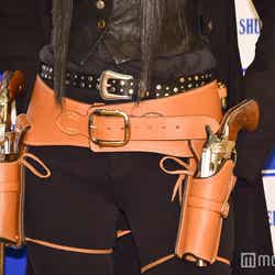 帽子や銃などは、秋本氏の私物。腰のガンベルトにもびっしりと弾が収納されており、松田は「意外と重くてティガーって本当に強いんだなと。これを着ていると強くなれた気がします」とコメント。「実写版やるときは是非」とスタッフから声をかけられると、松田は「是非よろしくお願いします」と頷いていた。