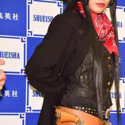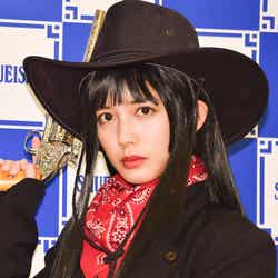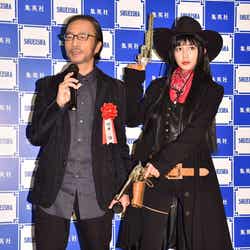 11月2日に発売される同コミックは、『こちら葛飾区亀有公園前派出所』の40年の連載を終了した秋本氏が描く、完全新作。本格西部劇、荒野のガンアクションで、かつてない銃撃戦とバイオレンスを女ガンマンが生き抜く内容で、『グランドジャンプ』にて連載中。発売を記念して、週刊ヤングジャンプの表紙や女優として活躍し、集英社秋のデジタルマンガ祭『秋マン!』(9/15~11/9 開催中)のキャンペーンガールを務める松田をゲストにイベントを開催した。松田は主人公の女ガンマン、ブラック・ティガーの衣装で登場。秋本氏は「イメージ通り。ティガーは決して筋肉質じゃなくて華奢なんです。でも女性らしいボディラインはあるっていうのが描きたかったのでイメージ的には本当にこの感じです。現物見て大満足です」と絶賛。