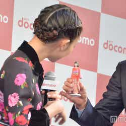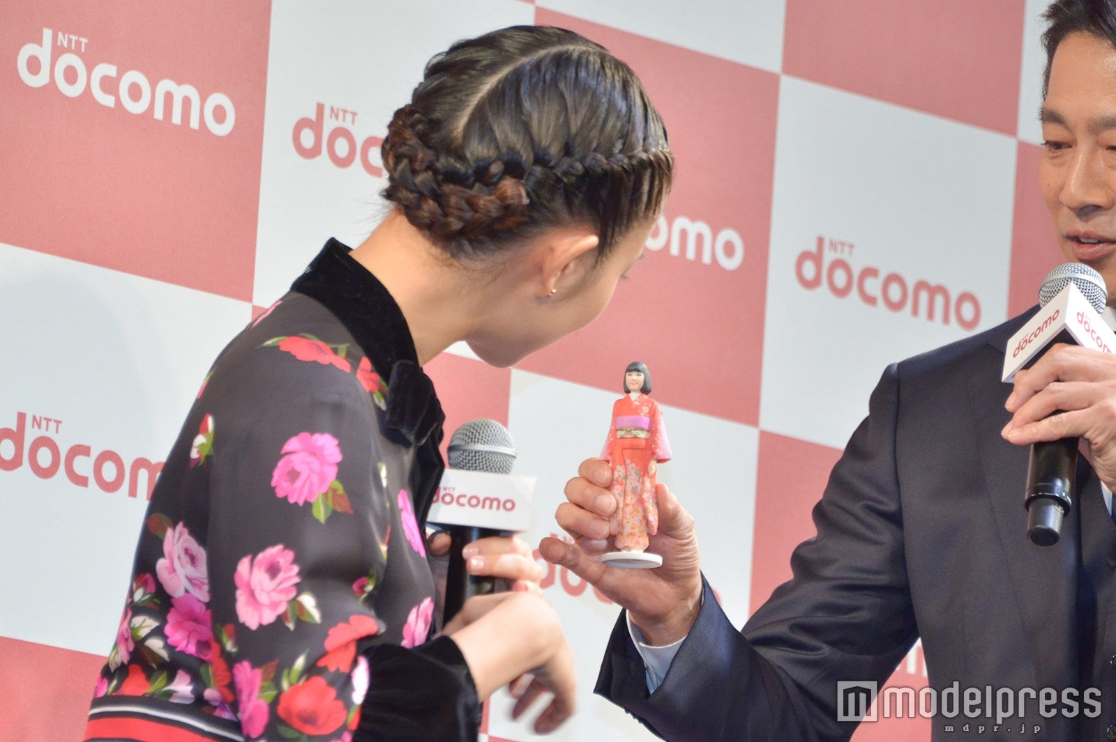 この日の発表会では、3D撮影ができるスマホの発表が行われたことから綾野は「スマフォで誰でもモデリングできる、これはすごいことなんですよ!アバターやフィギュアとかもつくれる」と熱弁。そこで、実際にブルゾンを3D撮影して作られたフィギュアが会場にお目見えすると、綾野らは興味津々に“ミニブルゾン”を見ていた。