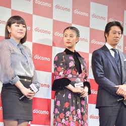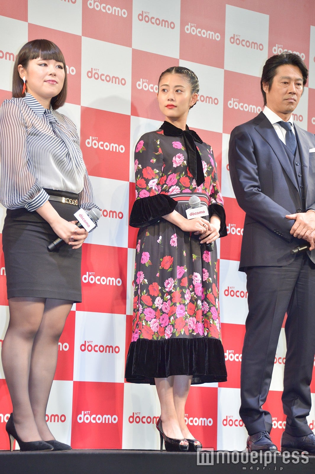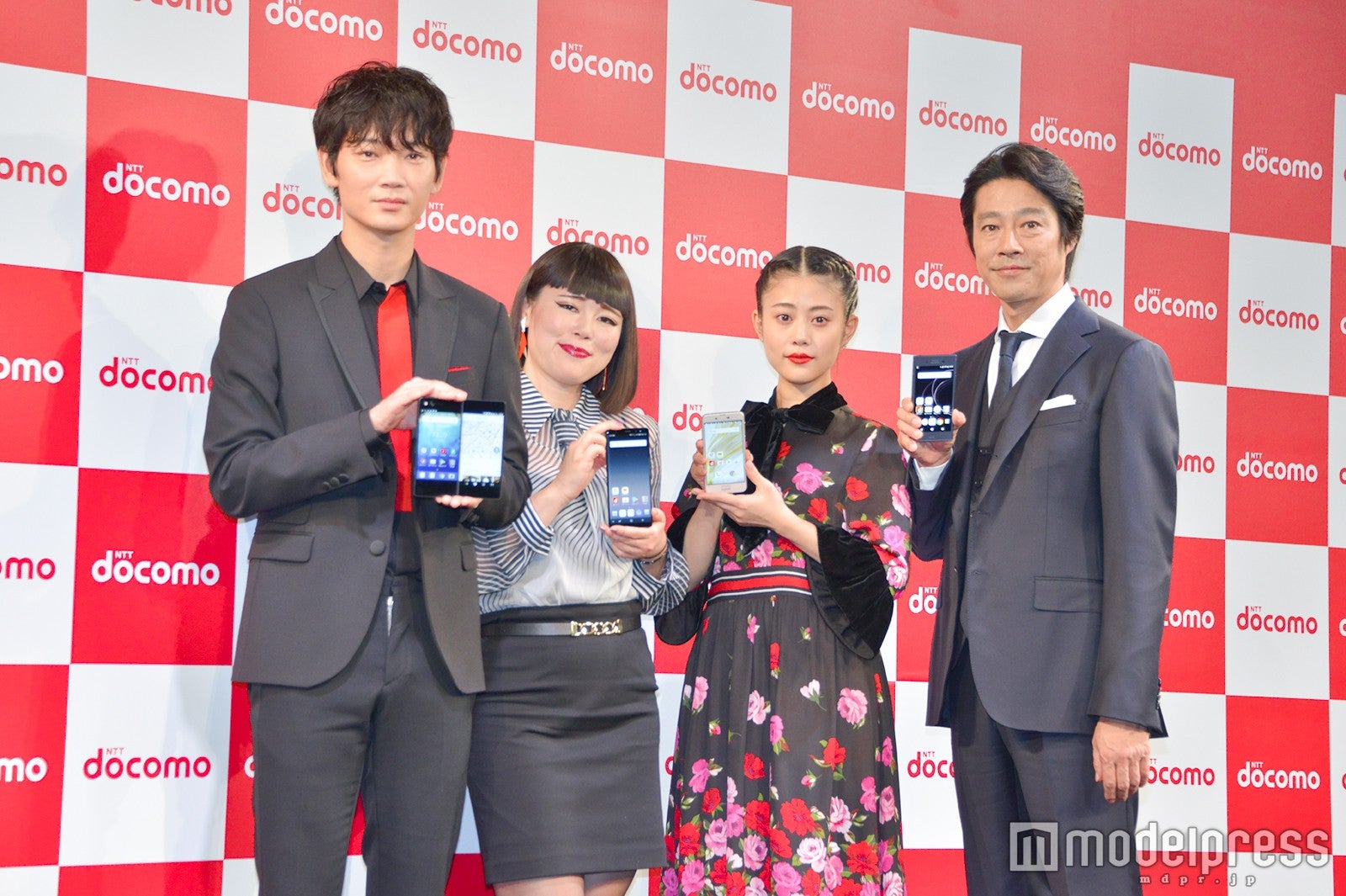 お笑い芸人のブルゾンちえみと俳優の綾野剛が18日、都内で行われた新商品発表会に堤真一、高畑充希と登場。