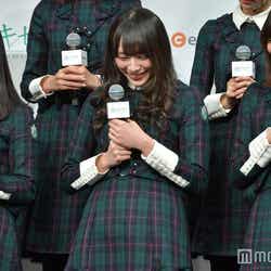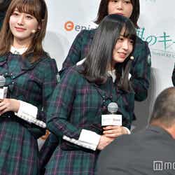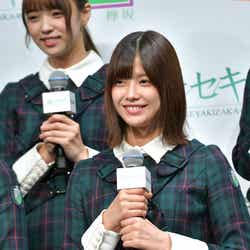 また楽屋で流行っていることについて守屋は「私はトランプゲームが好きなので、よく長濱ねると大富豪をして遊んでいます」と紹介。同CMの撮影について、渡邉(理佐)は「渡辺梨加ちゃんと2人での撮影があったんですけど、階段を駆け上がるシーンがあって。前を見ながら階段を登らないと行けなかったので、足元が見えずころそうになってしまって難しかったです。『先を見て』って監督さんに言われたので、転びそうになりながらも頑張りました」と苦労を語り、渡辺(梨加)と顔を見合わせ頷いていた。
