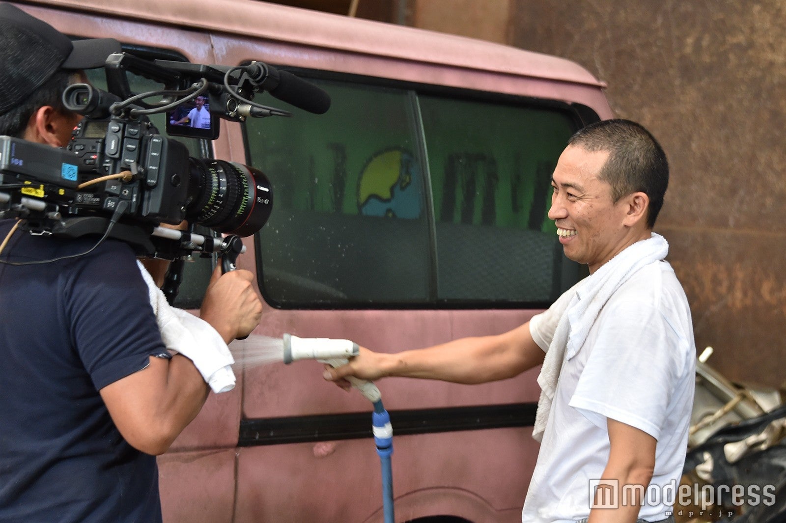 猛暑の中、長時間の撮影となったがお揃いのツナギ姿に身を包んだメンバー達は、ラブワゴンやメンバーとの再会を喜ぶ気持ちの方が大きいようで、終始和気あいあいとした雰囲気。