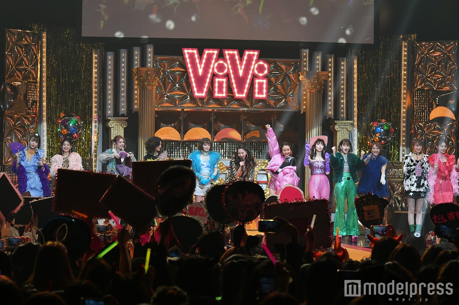 新たに同誌に加入した古畑星夏と藤田ニコルも登場。「ViVi Night」は恒例の同誌のイベントとなるが、このほど専属モデルの仲間入りを果たした2人にとっては初の「ViVi Night」となった。トークでは「すごい今緊張してるんですけどこうやって皆さんに会えてとても嬉しく思ってます、どうぞこれからよろしくお願いします」(古畑)、「はじめまして藤田ニコルです。出るの言ってなくてうちわとかあるのかなってすごく心配してたんですけど、ありがとうございます~」(藤田)と初々しく挨拶。観客に温かく迎えられていた。