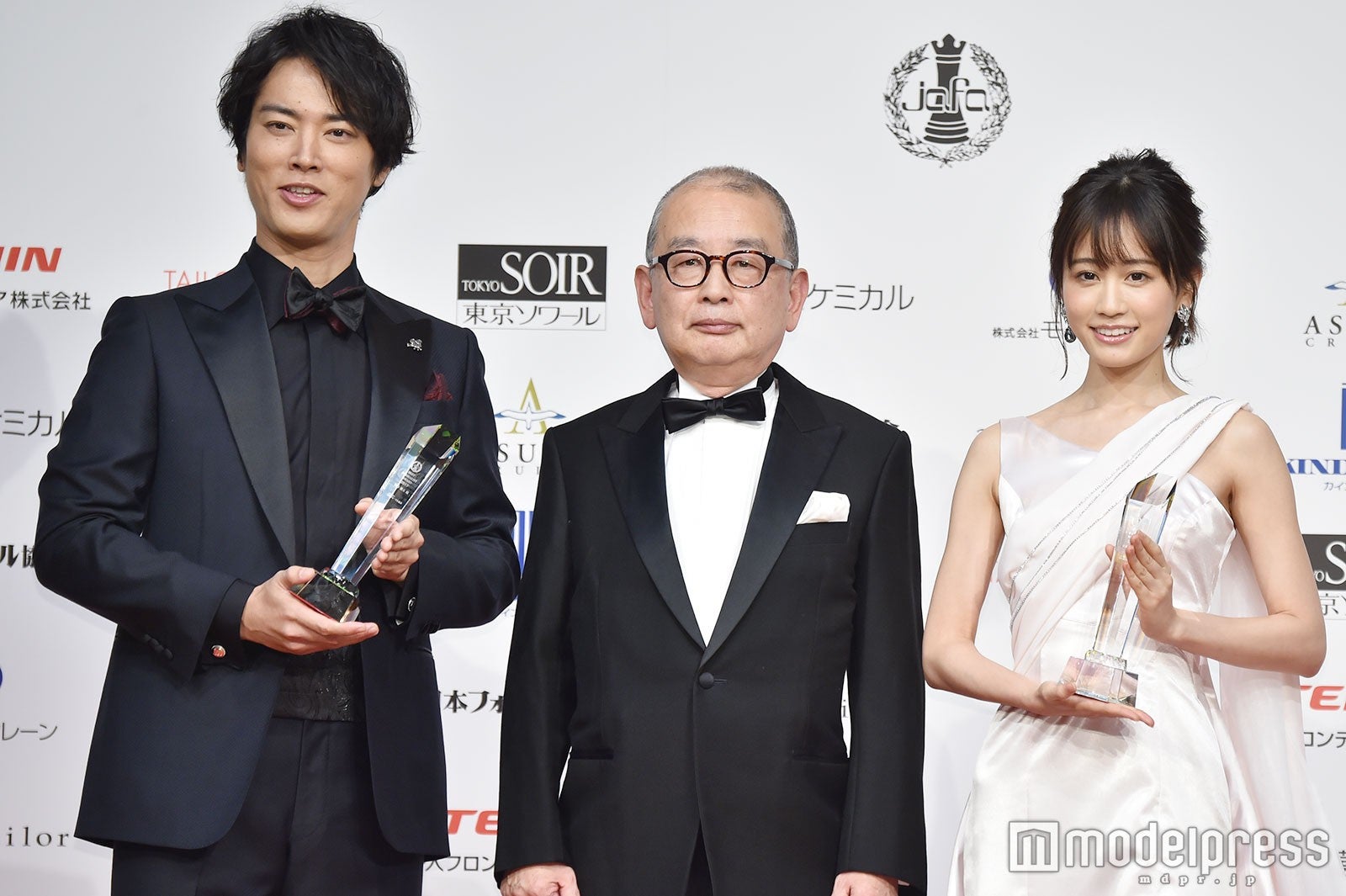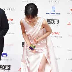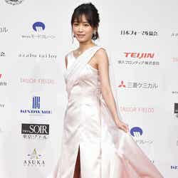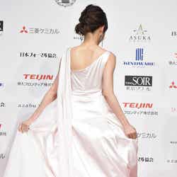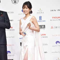 女性部門で受賞し、ドレスセラピストの池本紫氏がデザインしたパールピンクのドレスを身にまとった前田は、受賞した感想を聞かれると「ドレスはいつも着るたびに身が引き締まって、そしてここまでおしゃれに着られて幸せなひとときだなと思います。すごく嬉しいです」と笑顔。ドレスのお気に入りポイントを聞かれると「後ろに長い、取り外しができる素敵なスカーフを付けていただいたんですけど、後ろ姿も素敵にしてもらったのがすごく嬉しいですね」と声を弾ませた。