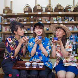 市場のすぐそばにある比嘉製茶では、沖縄のソウルドリンクともいわれる「さんぴん茶」や「ゴーヤー茶」などを試飲。さらに、国際通りにある「Fontana Gelato」では、見た目は7色で派手派手なのに味はミルクという不思議な「レインボーミルクジェラート」を堪能。メンバーは、味もさることながら、そのビジュアルに感動していた。