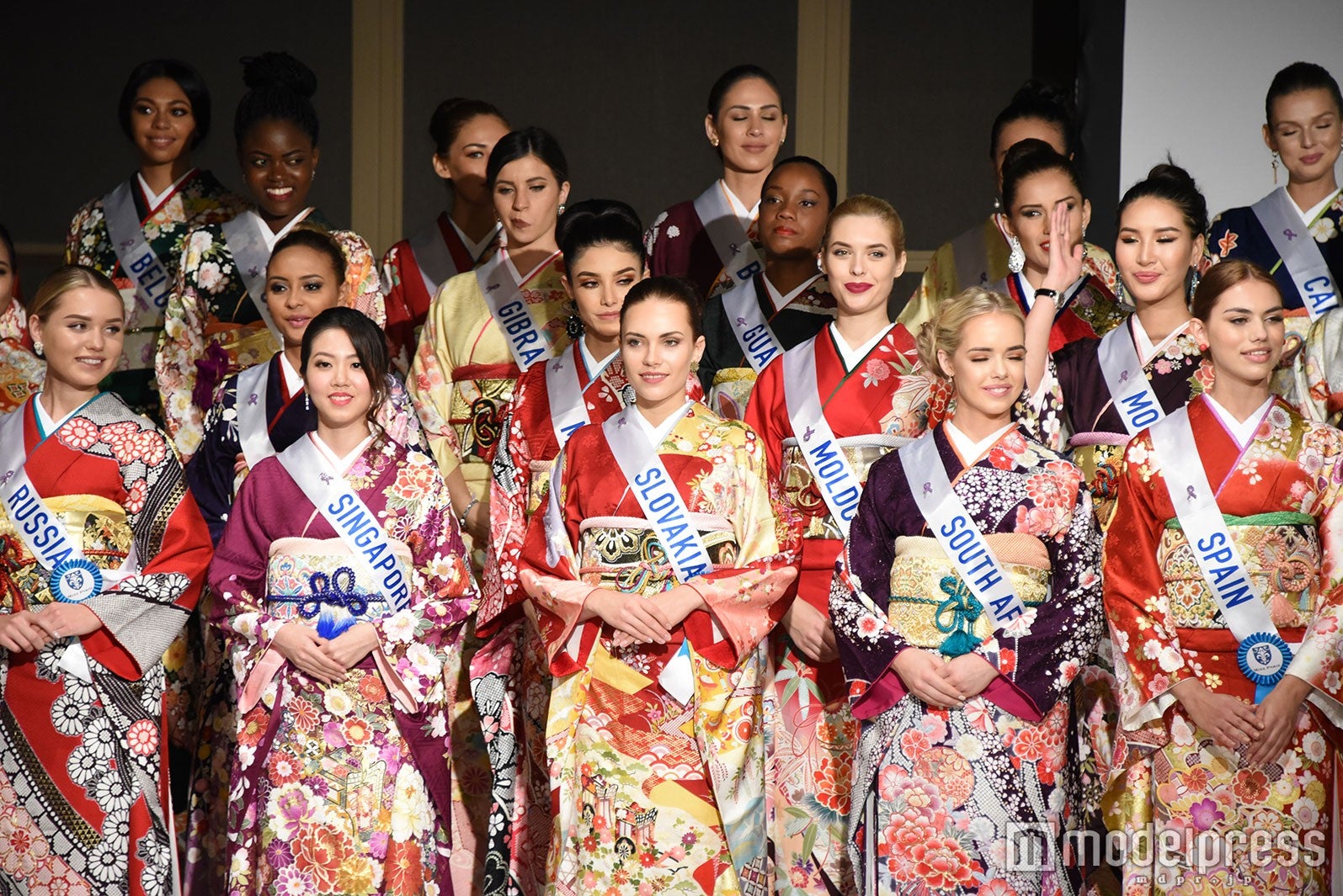 世界規模の美の祭典「第57回ミス・インターナショナル世界大会」の来日記者会見が27日、都内にて開催され、各国や地域のミス約70名が艶やかな振袖姿でお披露目された。