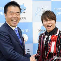 T.M.Revolutionの西川貴教が29日、都内で開催された『ここ滋賀』オープン記念イベントに、三日月大造滋賀県知事、ジャーナリストの田原総一朗氏らと出席した。