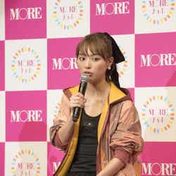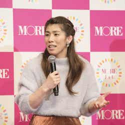 モデルの佐藤栞里、内田理央、女子レスリングの吉田沙保里が29日、都内にて行われた「MORE40周年記念『モアチャレ』報告イベント」に参加した。
