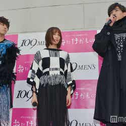 見た目や発言は男らしいが、好きな人の前だけでたまに可愛らしい一面をみせる“けだもの男子”たちの恋模様を描く同作。松尾は「けだもの男子は初めて聞く名前。その先駆け的存在になれるのは嬉しい」と笑顔。甲斐は「ずるいな、かっこいいなと思わせるのがけだもの男子」とイメージを明かした。また、松尾と甲斐では「どちらがけだもの男子?」といった質問を受けた中村は「今日お会いして、こっち(松尾)にしか目が行かない(笑)」と、見た目ではフェザーがあしらわれたトップスで登場した松尾をあげたが、「中身だと甲斐さん」と回答。甲斐について、中村は「私服が全身ブラック。しゃべらないときは話しかけていいのかなと思うけれど、笑顔がかわいい。太陽にみたいに笑ってくれる」とギャップを明かした。(modelpress編集部)