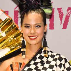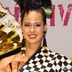 2017ミス・ユニバース・ジャパンの阿部桃子が1日、都内で行われた「ミス・ユニバース世界大会壮行会」に出席。同大会で着用するナショナル・コスチュームを初お披露目した。