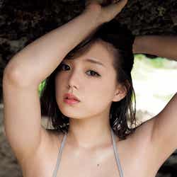 また、表紙でも初解禁となった手ブラショットを披露しており「自分では、あまり出ている感じに見えていないんですけど、友だちからは『脱いだの?』って言われるし(笑)。でも綺麗に撮ってもらったのでいいかなと思います」と笑顔で感想をコメント。お尻を披露しているカットに話が及ぶと「本当にコンプレックスなんです…」と渋い表情を浮かべた。