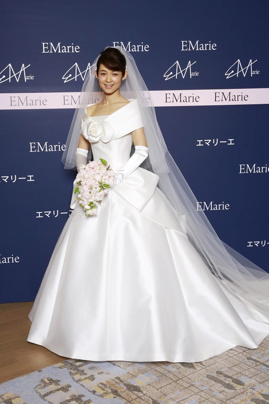 ウエディングドレスは、ブランド「エマリーエ」のデザイナー・エマ理永氏が制作したオートクチュール。藤澤とは、出演した映画「結婚しようよ」(2008年)で仕事をして以来、交流が続いていたといい、モデルプレスの取材に対し「以前、映画(結婚しようよ)の衣裳でお世話になったご縁もあって、自分の本番にもエマリーエのドレスが着たいなというのが夢でした。クラシカルな式に憧れがあったので、そのイメージに合う上品で素敵 なドレスを作って頂きました」とコメント。純白のウエディングドレス姿に夫は「綺麗だね、と言ってくれました」と明かし、「これまでお世話になってきた私の大好きな方々に見守っていただき、この上なく幸せでした。今日の日の喜びを忘れずに常に感謝の心を持ち、温かい家庭を築いていきたいです」と挙式の感想を語った。