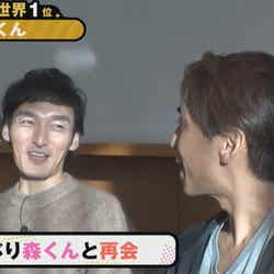 1996年にSMAPを脱退し、オートレーサーに転身した森。脱退をメンバーに報告した際の話題になると、「はじめてみんなに報告してくれた時のあの楽屋。全部覚えてる」と稲垣。香取も「あれは忘れられない。部屋に入ってくるガチャって音とか、みんながどこにいてって配置も覚えてる」と当時を振り返った。