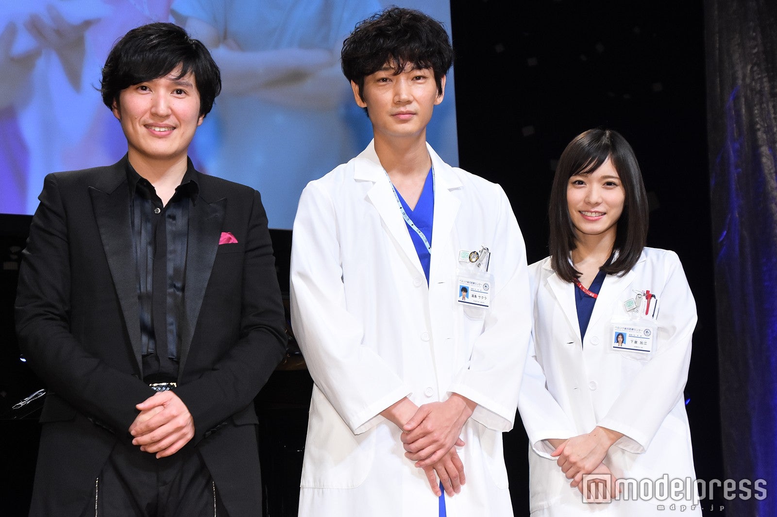 現在放送中のTBS系連続ドラマ『コウノドリ』(毎週金曜よる10時)のピアノテーマと音楽監修を担当している清塚氏のコンサートに、産婦人科医・鴻鳥サクラ役で主演を務める綾野と、下屋加江役の松岡が登壇。観客には一切知らされていない完全サプライズで、役衣装で2人がステージに現れると約1200人の割れんばかりの黄色い声援が会場に響いた。綾野剛&松岡茉優「コウノドリ」トーク