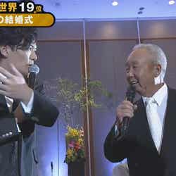 そして、式も中盤に差し掛かった頃、カナさんの親族が滋賀県より到着。カナさんのお父さんは「なにがなんだか分からず…」と困惑しており、「庭掃除をしていたら吾郎さんから電話があって…今日はありがとうございます」とコメント。カナさんの祖父も「朝からグランドゴルフをやっておりまして、そしたらら電話がきて『すぐ東京へ来い』と」と弾丸上京の背景を明かした。「72時間ホンネテレビ」