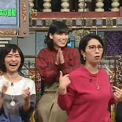 そんな誠子に松野が「ミス日本コンテスト」グランプリにもかかわらず「わかる」と同調し炎上する展開に。また、美貌に加えてFカップだという松野だが男性の前ではかわいい言動ができず、いまだに彼氏ができたことがないと悩みを打ち明ける。なんとかフォローしようとするさんまだったが、松野の顔を「〇〇みたいな顔」とまさかの下ネタ。美女のまさかの赤っ恥に女芸人軍団は大喜びする。また、アンミカは「わかるわかる」を連発する女の薄っぺらさに辟易。我妻三輪子は夫との家でのラブラブすぎる会話を明かすと、さんまが「60年間そんな会話したことない!」と夫婦の幸せについて思い悩む場面も。
