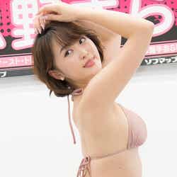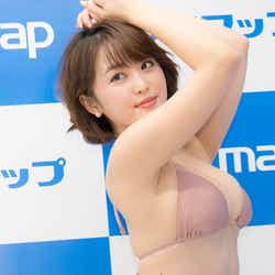 また、着用した水着については「いつもとあまり変わらないけど、和柄の水着は初めて着ました」とニッコリ。オススメの写真を聞かれると「実は出来上がったものを初めて見るんです(笑)」と迷いながら、「今回はセクシーっていうよりも爽やかな明るめな感じが多いですね」とアピールし、「このぐらいの期間から髪が伸びてきて、やっと癖っ毛っぽいカットが出来るようになったんです」と嬉しそうに明かした。