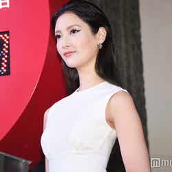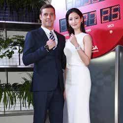 ボディラインの浮き出たホワイトのドレスを身にまとい、深く入ったスリットから美脚を覗かせながら登壇した菜々緒。「2020年東京オリンピックに向けてカウントダウンが始まり、私もすごくわくわくしています。チャドさんをはじめすべての選手が素晴らしい結果を残せるように私も祈っています」と声を弾ませた。